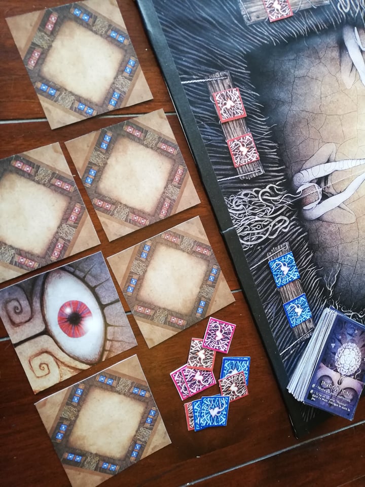 "Avec un style graphique surréaliste, Ayahuasca Game nous plonge dans un monde métaphasique, où chaque joueur incarne un chaman. Celui ci reçoit une carte secrète au début du jeux, qui représente un schéma à reproduire sur le plateau et gagner une pierre de lune. Mais les autres joueurs sont la pour déjouer ces plans car ils ont le même but et les cartes sont constamment retournées. Il faut réussir à avoir 2 pierres de lune pour gagner le jeu."